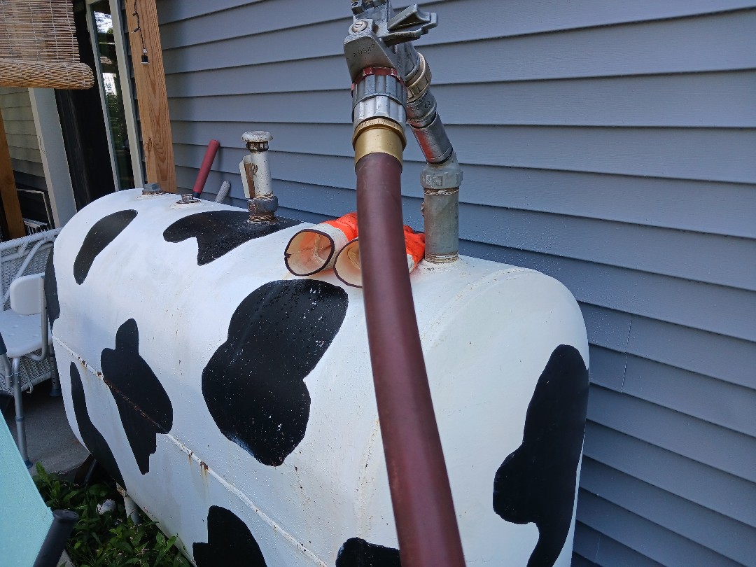 Making a home heating fuel oil delivery filling customer 275 gallons tank