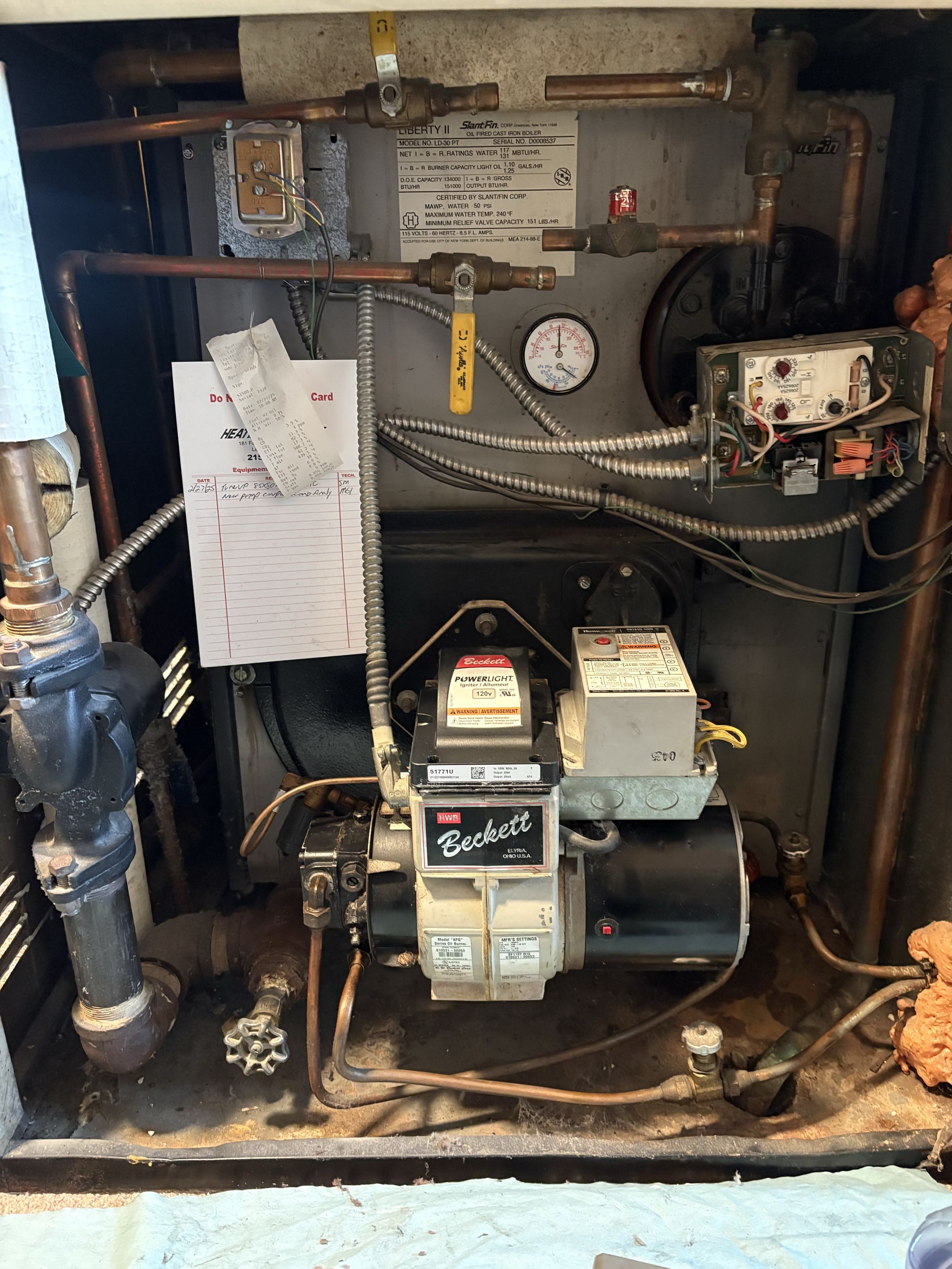 Burnham oil boiler tune-up. Beckett burner