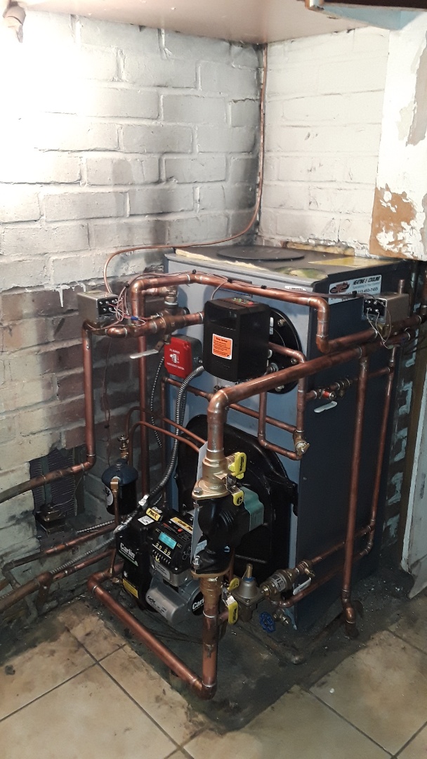 Oil Heater Repair on Burham Oil Boiler. Customer had issue with heating upstairs zone. Replaced automatic water feeder, fire and check operations and safety controls.