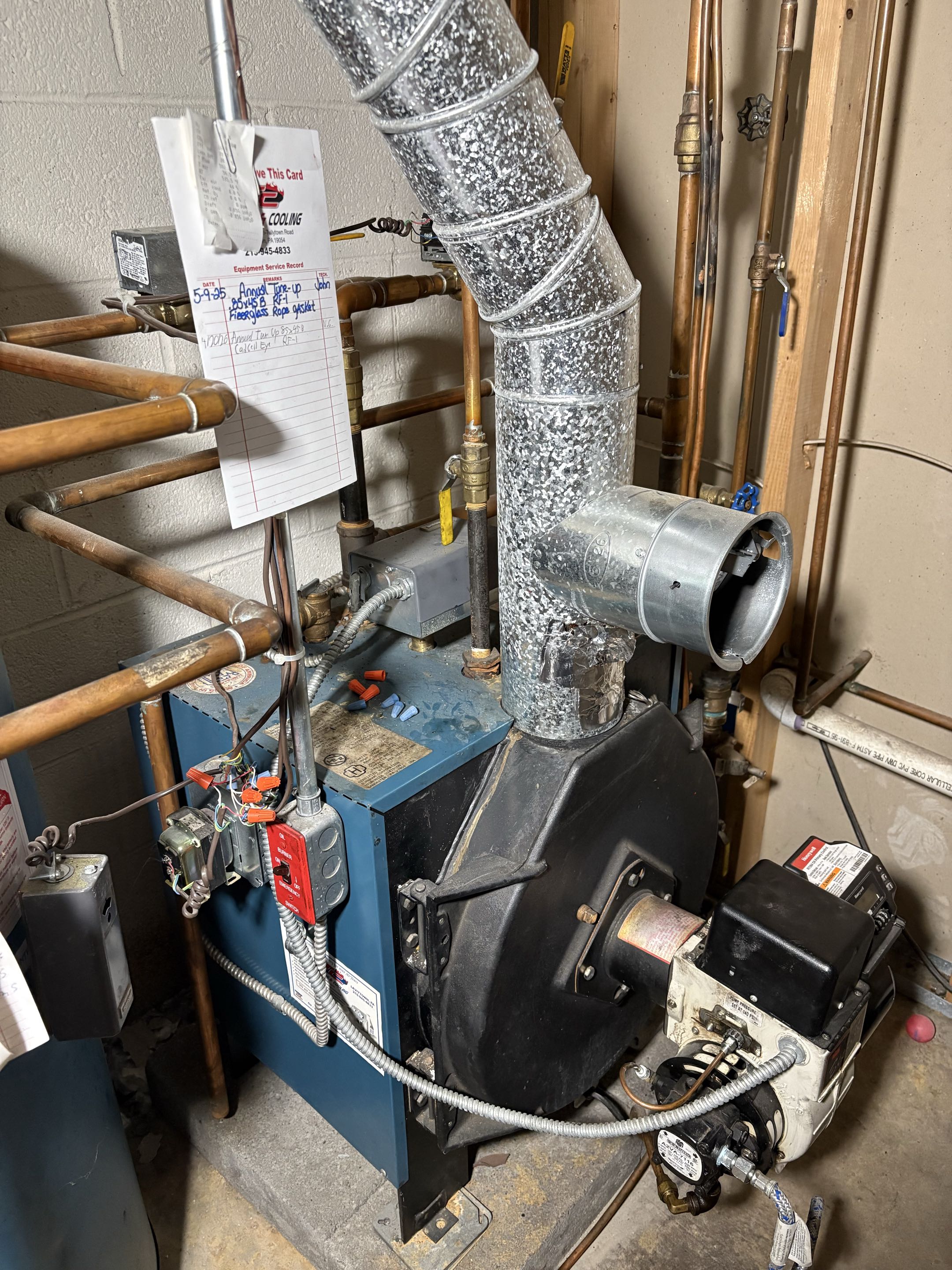 Completed a thorough oil boiler tune-up, focusing on the Carlin burner. Checked fuel lines, cleaned components, and ensured optimal burner performance for efficient heating.